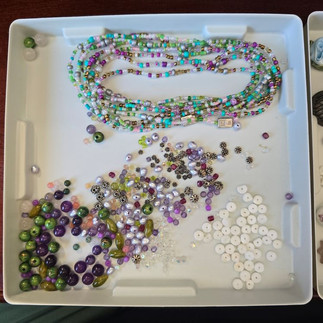 I chose a variety of buttons, beads, and costume jewelry. And, as you'll see in later pictures, I incorporated craft objects like thread spools, bobbins, and safety pins.